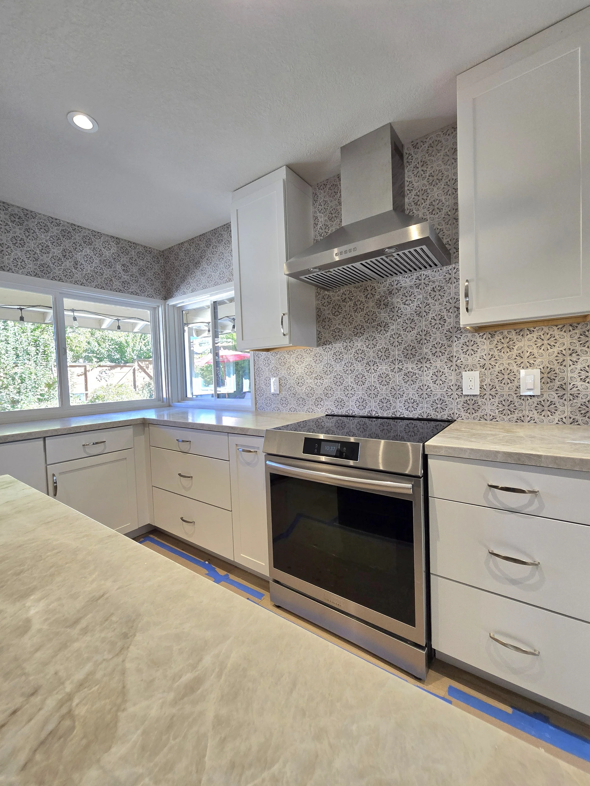 Pendant lights over the island are forthcoming.